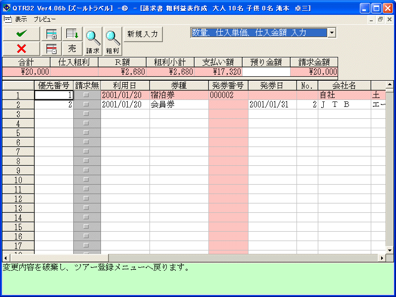 自社クーポンは自動集計 他社券、その他諸経費等も自社クーポン発券時と同様、手入力は最小限 請求書の出力レイアウトは、自由に設定可能 一目で入力すべき箇所をカラーでガイドする入力シート